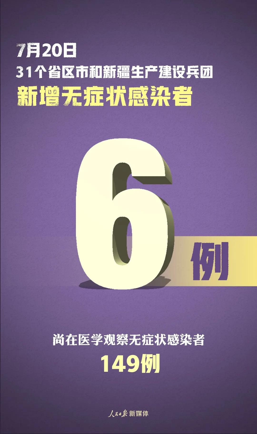 31個(gè)?。ㄗ灾螀^(qū)、直轄市)和新疆生產(chǎn)建設(shè)兵團(tuán)報(bào)告新增無癥狀感染者6例(境外輸入1例);當(dāng)日轉(zhuǎn)為確診病例1例(境外輸入1例);當(dāng)日解除醫(yī)學(xué)觀察10例(境外輸入7例);尚在醫(yī)學(xué)觀察無癥狀感染者149例(境外輸入80例)。