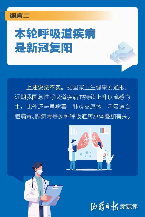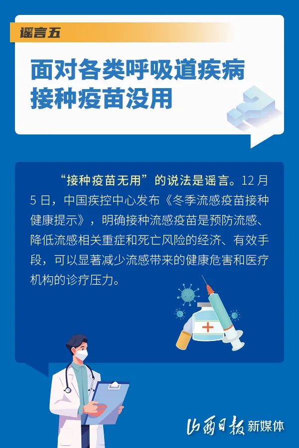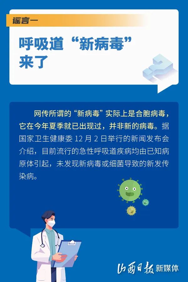 近期,呼吸道疾病呈現高發(fā)態(tài)勢。個別不實信息趁機傳播擴散,誤導公眾認知。特此澄清關于呼吸道疾病的5個謠言,幫助大家知曉呼吸道疾病的基本常識,做好健康監(jiān)測及預防措施。閱讀、收藏、轉發(fā)吧!