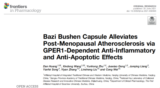 近日,南京中醫(yī)藥大學附屬中西醫(yī)結合醫(yī)院黃丹博士關于“八子補腎膠囊通過抗炎和抗凋亡作用減輕絕經后粥樣動脈硬化”研究,6月25日發(fā)表在國際學術期刊《Frontiers in Psychology》上(影響因子為5.810)。