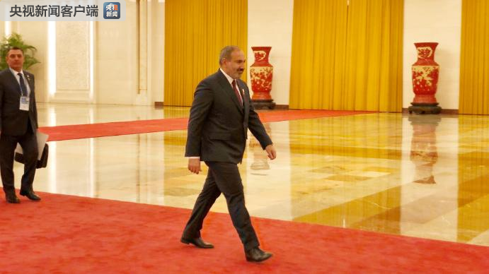 △前來與習(xí)近平會面的亞美尼亞總理帕什尼揚。(央視記者許永松拍攝)