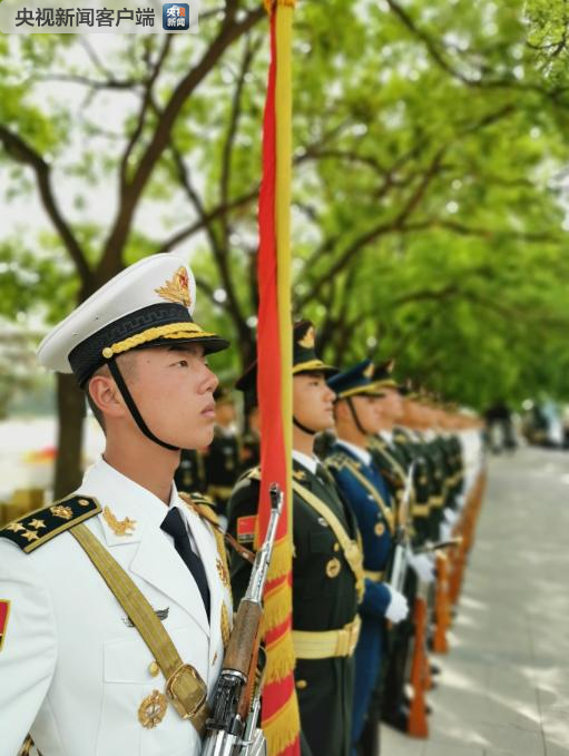 △三軍儀仗隊正在列隊。(央視記者荊偉拍攝)