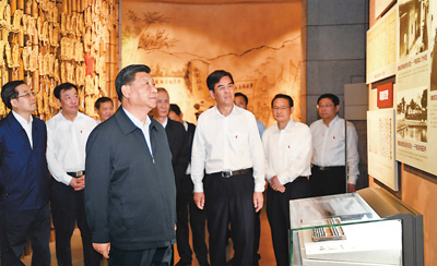 5月20日至22日,中共中央總書記、國家主席、中央軍委主席習近平在江西考察,主持召開推動中部地區(qū)崛起工作座談會并發(fā)表重要講話。這是習近平在贛州市于都縣中央紅軍長征出發(fā)紀念館參觀,聽取有關中央紅軍長征集結出發(fā)歷史情況介紹。新華社記者 謝環(huán)馳攝