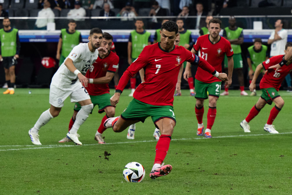 7月1日,C羅在比賽中主罰點球。新華社記者 肖藝九 攝