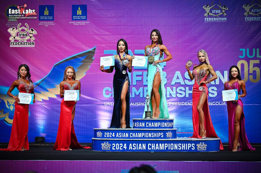 史璠(左四)收獲女子健身模特A組、健身比基尼B組以及這兩個項目的全場冠軍。