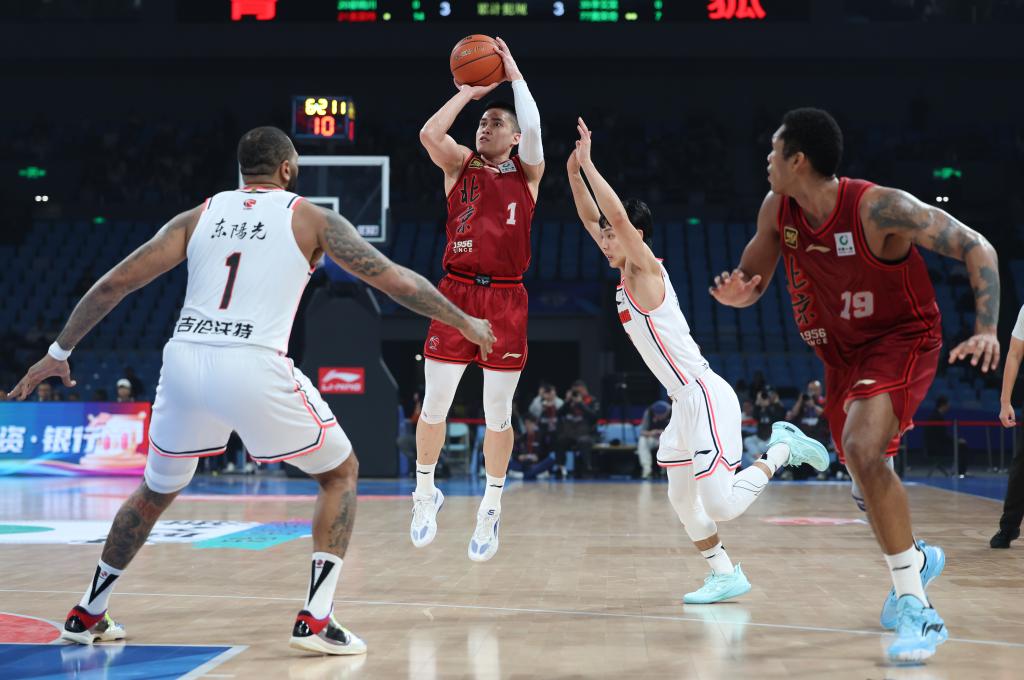 10月25日,北京隊(duì)球員陳盈駿(左二)在比賽中投籃。新華社記者 王楷焱 攝 時(shí)光倒流半年,大概連北京隊(duì)的忠實(shí)球迷也難以想到,上賽季以第11名勉強(qiáng)拿到季后賽門票的主隊(duì),能夠在新賽季第一階段以9勝1負(fù)的成績一枝獨(dú)秀。 北京隊(duì)在休賽期展現(xiàn)大手筆,簽下內(nèi)線大將周琦的同時(shí)又招入球風(fēng)硬朗的后衛(wèi)陳盈駿,此外也有多名外援加盟,但球隊(duì)的變化或許更早就已埋下伏筆。5月底,許利民接過隊(duì)伍教鞭,休賽期也成為這名中國籃球名人堂成員打磨球隊(duì)的最佳時(shí)機(jī)。隊(duì)長翟曉川在新賽季開始前表示,隊(duì)伍原來是“一個(gè)人打四個(gè)人看”,如今則是人人有職責(zé)。10輪過后,北京隊(duì)場均失分聯(lián)賽最少、場均籃板與助攻均在前三,成為這一改變的有力印證。第一階段,隊(duì)伍六個(gè)主場保持全勝,陳盈駿對陣廣東隊(duì)時(shí)的鐵血三分更使人回想起昔年四年三冠的輝煌歲月,也呼應(yīng)著許利民說過的愿望:“內(nèi)心不甘,要讓更多球迷回到我們的主場!”