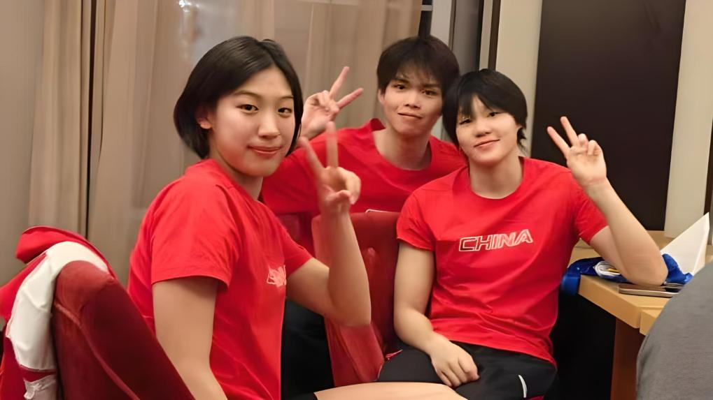 楊佩琪(右)、嚴窕珊(左)和徐海博(中)。中國游泳隊供圖