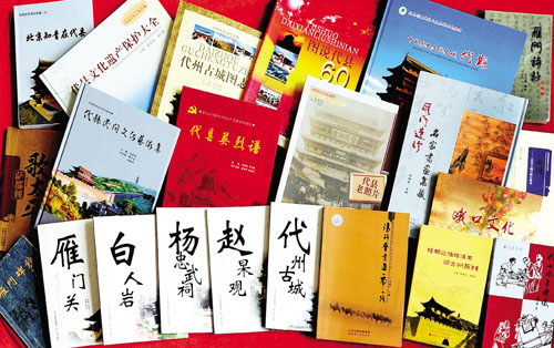 由程培甫、馮祥主編的《雁門碑抄》收錄了唐代以來鐫刻在代縣各地的古碑碑文98篇,詔、敕、封誥19篇,從不同的側(cè)面反映和記錄了代縣悠久的歷史和博大的文化內(nèi)涵,是挖掘、整理、弘揚雁門文化極其珍貴的歷史資料。由王文藻主編的《雁門詩抄》,分“人物篇”和“形勝篇”兩本。“人物篇”匯集了有詩詠代的代州人,或在代地作過官,或因事涉足過代地的83位歷史人物和詠贊他們的230首詩詞,意在讓今人了解古人的業(yè)績政聲,學(xué)習(xí)古人的品格情操。“形勝篇”則收集了歷代仕宦、詩人、騷客、雅士游覽代州時寫下的300多首詠贊代州壯美山河、名樓勝跡的古代詩詞,意在讓今人更好地挖掘、了解、弘揚博大精深的雁門文化,推動代縣旅游事業(yè)的發(fā)展,促進縣域經(jīng)濟的振興。2008年由山西人民出版社出版的《代縣老照片》,收集了代縣從清朝末年到上世紀(jì)50年代拍攝的360多幅珍貴的歷史照片,分為古城遺跡、雁門雄關(guān)、教育篇章、代商風(fēng)采、社會百態(tài)、名人佚事、革命史詩等七個篇章,結(jié)為一集。翻閱這些泛黃的老照片,讀者可以欣賞文化名城宏偉壯觀的古老建筑,瞻仰歷史名人的風(fēng)姿俊采,領(lǐng)略代州驕子的雄才大略,感受有識之士的宏圖大志,體會莘莘學(xué)子的凌云壯志……透過這些老照片,我們既能追尋歷史,更可展望未來。2009年出版的《圖說代縣60年》,以編年體的形式,按照時間順序,選取每年在代縣大地上發(fā)生的重大事件、重要人物,或是能真實反映當(dāng)時當(dāng)?shù)鼐哂袝r代特色、風(fēng)土人情的歷史照片780多幅,配以簡明扼要的文字說明,形象生動地再現(xiàn)了新中國成立60年來代縣發(fā)展變化的歷史進程,是新中國60年發(fā)展變化的一個縮影。它所包含的信息和所起到的作用會超越時空,成為后人認識歷史演變的生動教材。同年出版的《代縣古城圖志》則以圖文并茂的形式,向讀者介紹了代州古城的歷史沿革、代州古城的城垣、街衢、商貿(mào)、衙廨、教育、寺廟、風(fēng)俗風(fēng)物、歷史人物等內(nèi)容,展示了古代州悠久的歷史和深厚的文化底蘊,為人們提供了一個了解代州古城的窗口。