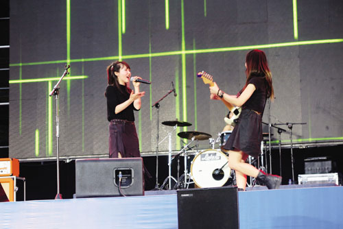 “希望你們能記住我們,我們是瞳樂隊(duì)?!闭l也想不到熟練操作吉他、貝司、架子鼓的是四位美女。這支來自北京,由四個(gè)熱愛搖滾、個(gè)性分明的90后女生組成的樂隊(duì),毫不遜色于大老爺們兒,她們將音樂感染力和舞臺視覺上的沖擊力融為一體,加上主唱獨(dú)特嗓音演唱的躁動(dòng)或安靜的歌,敲打著觀眾的靈魂。有觀眾戲稱,這就是美女的力量。