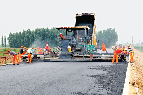 勝利路南延工程鋪設(shè)最后一遍瀝青(趙曉煒 智芝龍 攝)