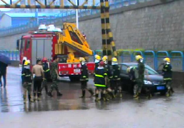7時59分,同一地點,又1輛小轎車駛?cè)胨袩o法自救,忻州支隊楊屹茂支隊長聞訊立即親自帶隊趕到。到達現(xiàn)場后,楊屹茂支隊長立即指示忻府區(qū)中隊成立偵查小組,對現(xiàn)場情況進行偵查。根據(jù)偵查小組的反饋得知,被困車輛淹埋水位線為60公分左右,車內(nèi)有一名人員被困。當時正值暴雨天氣,水位線上漲,不斷威脅車內(nèi)被困人員的生命財產(chǎn)安全。隨后,楊屹茂支隊長迅速組織全體官兵,從被困車輛兩側(cè)和車頭,將被困車輛推出。