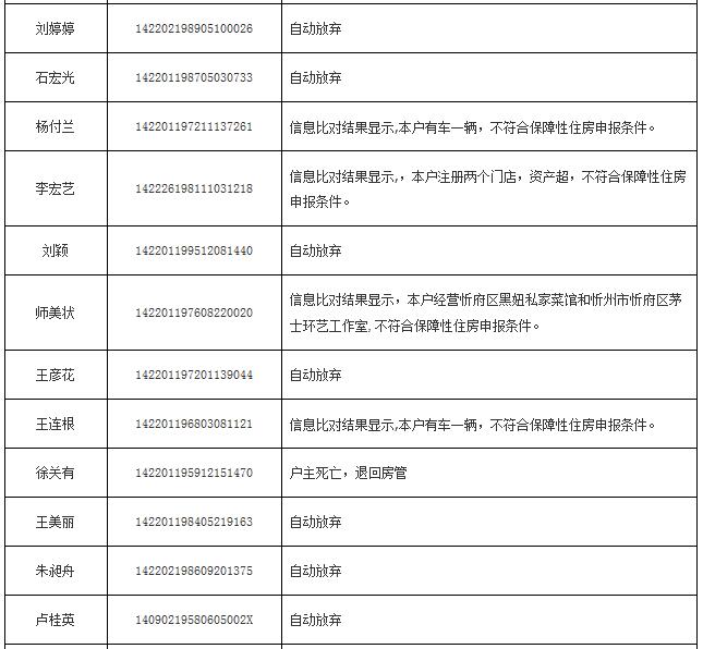 2014年申報(bào)公(廉)租房不符合保障條件花名表