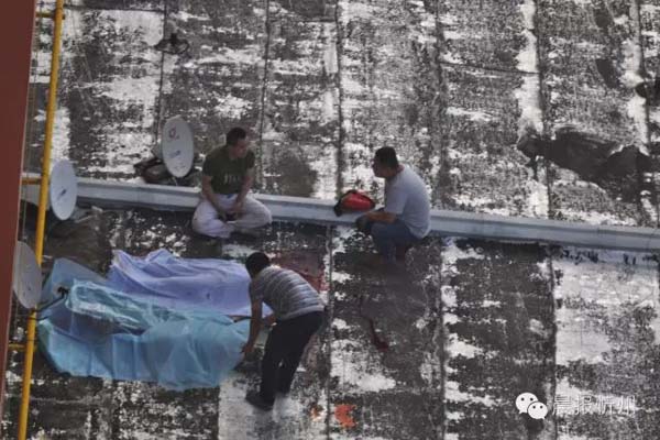 回想起那一瞬間,一位不愿意透露姓名的目擊者驚魂未定,據(jù)他介紹:“早上大概五點(diǎn)半左右,我和愛(ài)人正熟睡。突然,聽(tīng)到外面”砰“的一聲,驚醒了我們,老婆還自言自語(yǔ)說(shuō)樓上又有人往樓下亂扔?xùn)|西,話(huà)音剛落,又一物體重重的墜地的聲音傳來(lái),匆忙起床,跑到窗口往下看,只見(jiàn)一女子面朝房頂趴在商鋪樓頂?!?/p>