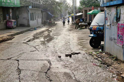 漏水處位于龍崗街龍崗小區(qū)門前15米處,已經(jīng)形成了一個(gè)一米見方的大坑,自來水源源不斷地從坑里流出,裹著泥沙沿街流去。在現(xiàn)場,居民何女士告訴記者,自來水已經(jīng)流了一天一夜,他們小區(qū)門前形成了小溪,想要過馬路必需踩著墊腳石,目前最擔(dān)心的是由于流出的水多半滲入了地下,容易導(dǎo)致地質(zhì)塌陷,希望相關(guān)部門盡快修復(fù)。記者隨即撥打了自來水公司報(bào)修電話,反映了上述情況,工作人員答復(fù)會派人盡快修理。到記者發(fā)稿,破裂的水管已修復(fù)。圖為7月29日被水浸泡的龍崗街(張志遠(yuǎn))