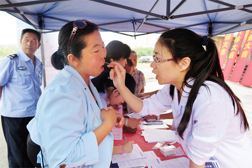 據(jù)了解,我市“幸福啟航·口腔健康公益行”活動由忻州美源口腔醫(yī)院負責(zé)執(zhí)行實施。該醫(yī)院是山西紅十字口腔醫(yī)院在我市開設(shè)的第一所分支機構(gòu),依托450名專業(yè)口腔醫(yī)護團隊,配備國際頂尖的牙科診療設(shè)備,讓忻州市民享受到國際水準(zhǔn)的口腔醫(yī)療體驗。據(jù)悉,忻州美源口腔醫(yī)院將成立專家組深入社區(qū)為廣大市民開展免費口腔檢查,為牙列不齊、缺失牙的貧困家庭婦女兒童,提供每例最高5000元的醫(yī)療資助服務(wù)。該院負責(zé)人表示,希望通過本次活動能夠傳播正確的口腔健康觀念,教授口腔健康保健知識,讓我市更多的市民有一口好牙。圖為口腔專家現(xiàn)場為市民檢查口腔(張志遠 王菲)