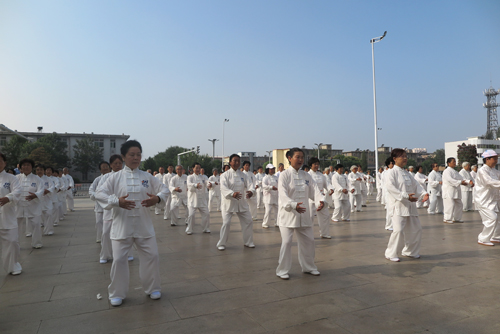 為了進一步弘揚太極文化,促進全民健身,追求拳無止境,自強不息的境界,達到促進交流、相互提高的目的,大力推進我市太極拳發(fā)展,8月10日上午,由國家體育總局健身氣功管理中心、山西省體育總會主辦,忻州市體育局、忻州市體育總會楊氏太極拳分會協(xié)辦的2016年全國百城健身氣功交流展示系列活動暨忻州市第二屆傳統(tǒng)楊氏太極拳比賽在我市城區(qū)日月廣場開賽。來自原平、寧武、忻府區(qū)等8支代表隊300余人參加比賽。