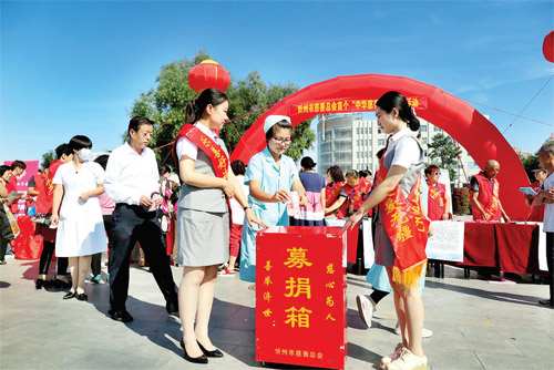9月1日,《中華人民共和國(guó)慈善法》(以下簡(jiǎn)稱《慈善法》)正式實(shí)施,9月5日是我國(guó)首個(gè)“中華慈善日”。這天上午,忻州市慈善總會(huì)在忻州城區(qū)日月廣場(chǎng)舉行規(guī)模盛大的集會(huì),向廣大市民宣傳普及國(guó)家《慈善法》的相關(guān)知識(shí)。中國(guó)公益在線忻州愛心團(tuán)的志愿者,同濟(jì)醫(yī)院、新世紀(jì)女子醫(yī)院、中西醫(yī)結(jié)合醫(yī)院、忻州肝泰肛腸醫(yī)院的醫(yī)務(wù)人員參加了宣傳活動(dòng),并慷慨解囊,與市慈善總會(huì)工作人員一道參與了現(xiàn)場(chǎng)的慈善捐款活動(dòng)。