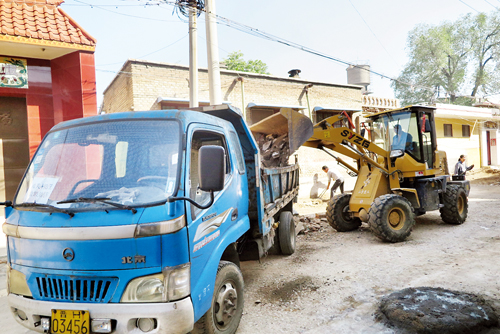 圖為忻府區(qū)南關(guān)村組織村民清運(yùn)拆除的建筑垃圾。