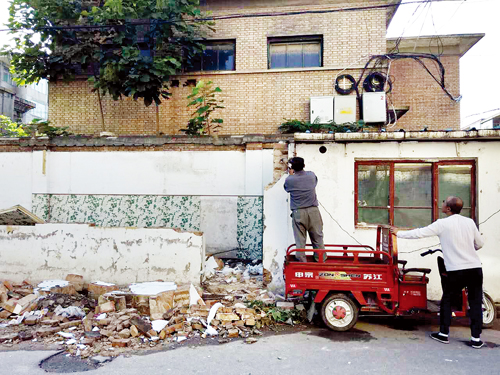 圖為忻府區(qū)亨通巷有關(guān)人員正在拆除違章建筑。
