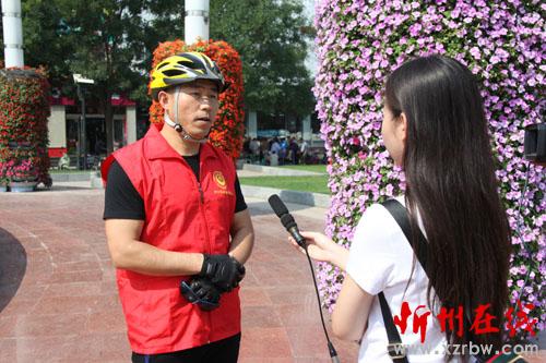 他們走街竄巷,活躍于大街小巷。通過騎行宣傳創(chuàng)衛(wèi),并隨手撿起人們丟棄的礦泉水瓶、垃圾袋,成為忻州街頭一道移動的環(huán)保風景線。