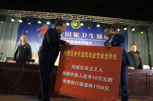 忻府區(qū)世平益民農(nóng)業(yè)專業(yè)合作社向城區(qū)環(huán)衛(wèi)工人捐贈(zèng)價(jià)值10萬(wàn)元保溫杯