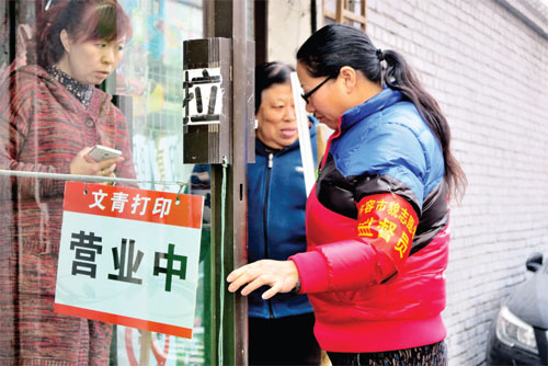與店主交涉,清理店外垃圾