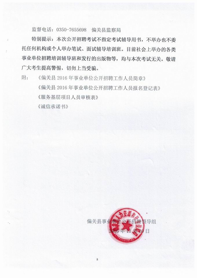 1、 《偏關(guān)縣2016年事業(yè)單位公開招聘工作人員簡章》