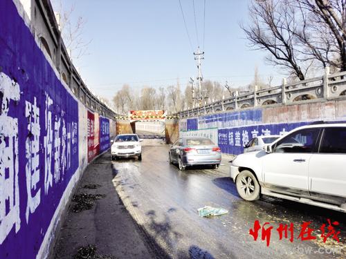 11月24日上午,記者一行在去往定襄的途中,行至忻府區(qū)北義井鄉(xiāng)臺忻線(S311)一處下坡路段時,車輛行進(jìn)緩慢。原來前面是一個橋洞,由于該路段地勢低,積水多,再加上天氣寒冷,橋洞下地面結(jié)冰,一輛貨車穿過橋洞上坡時,在結(jié)冰地面上起步困難,造成車輛擁堵。穿過橋洞后緊接著又是一段彎度較大的上坡路,一輛白色轎車停在路旁,右輪胎撞在了路墻上,車子損傷嚴(yán)重。路窄又滑,極易發(fā)生交通事故,希望相關(guān)部門予以重視。(王陽 高君 攝)