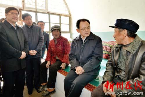 圖為市委書記李俊明在靜樂縣王端莊村王洞子家中慰問。本報記者宮愛文攝