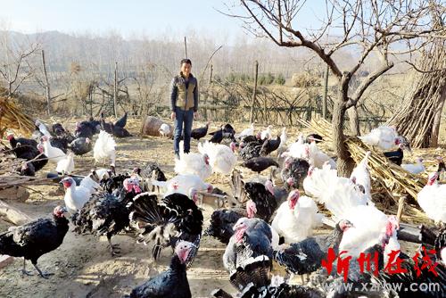 近幾年,農(nóng)村養(yǎng)殖戶想方設(shè)法尋求特色增效,喂養(yǎng)的雞林林總總,記者見識了不少,多少有點兒見慣不驚。然而,在原平市樓板寨鄉(xiāng)樓板寨村見到呂建文喂養(yǎng)的火雞時,記者眼前一亮。