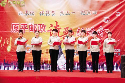 本報(bào)訊 在“五一”國(guó)際勞動(dòng)節(jié)到來之際,原平市郵政分公司舉辦了主題為“比奉獻(xiàn)、促轉(zhuǎn)型”的郵政詩歌朗誦會(huì),來自該公司10個(gè)基層部門的16名選手,通過10個(gè)節(jié)目的朗誦演繹,為勞動(dòng)者縱情喝彩。