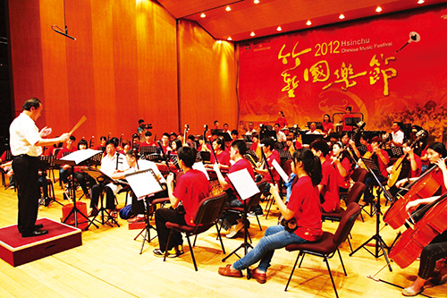 任新寧(左一)跟臺(tái)灣新竹樂團(tuán)合作演出