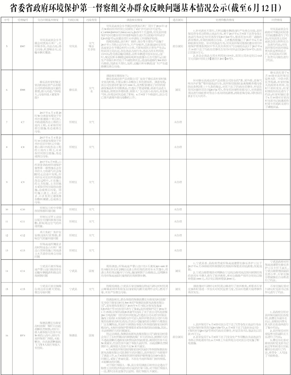 2017 年6 月12 日9 時,接收省委省政府環(huán)境保護第一督察組交辦第十五批群眾反映問題4 件;按重要性劃分,重點群眾反映問題1 件,一般群眾反映問題3 件;按區(qū)域分,忻府區(qū)1 件、河曲縣1 件、代縣1 件、市住建局1 件;按污染類型分,大氣3 件、固廢1 件。