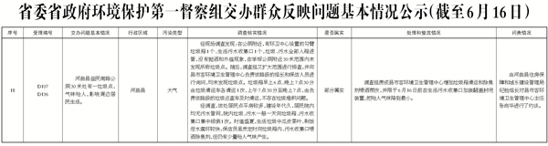 2017年6月16日9時,接收省委省政府環(huán)境保護第一督察組交辦第十九批群眾反映問題8件;按重要性劃分,一般群眾反映問題8件;按區(qū)域分,忻府區(qū)2件、定襄縣1件、代縣1件、寧武縣1件、保德縣1件、市公安局2件;按污染類型分,大氣4件、水3件、噪音2件、生態(tài)1件。