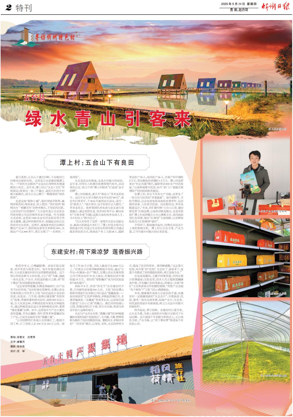 在潭上村,農(nóng)業(yè)不僅有生產(chǎn)功能,還帶來了一場文化與經(jīng)濟(jì)的“雙重盛宴”。每年插秧節(jié)、豐收節(jié)期間,總會有游客前來體驗農(nóng)事勞作、品嘗稻田家宴、入住星空民宿。站在稻田邊,李雙龍?zhí)魍h(yuǎn)方:“未來,我們要叫響‘五臺小江南、建安稻花香’區(qū)域品牌,讓每塊田既是糧倉,也是風(fēng)景線!”潭上村還將整合五臺山佛教文化、徐向前故居紅色資源,推出“紅黃綠”文旅線路,讓農(nóng)耕體驗成為人們的精神“福田”。