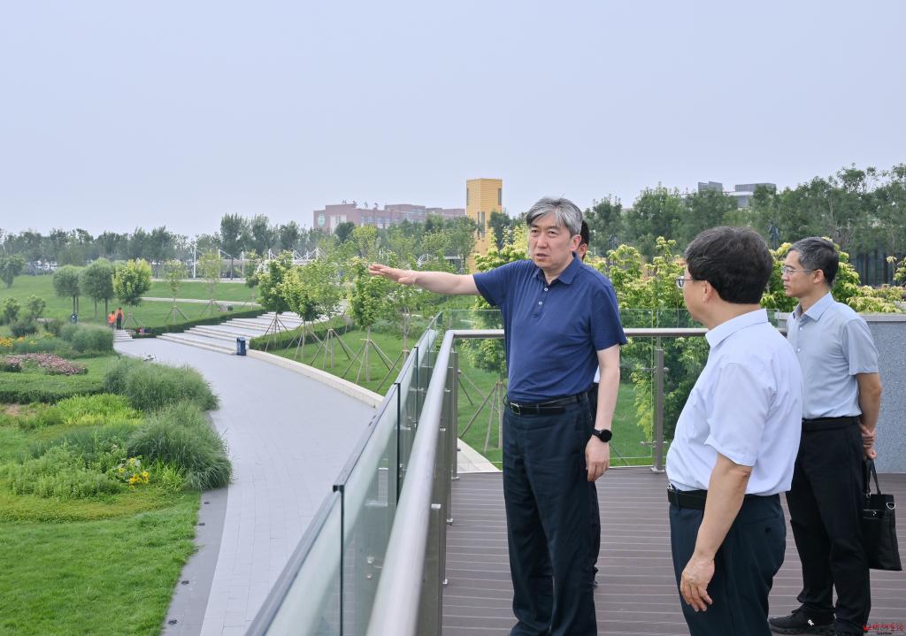 在牧馬河生態(tài)公園調(diào)研公園日常運(yùn)行管理情況。馮曉磊攝