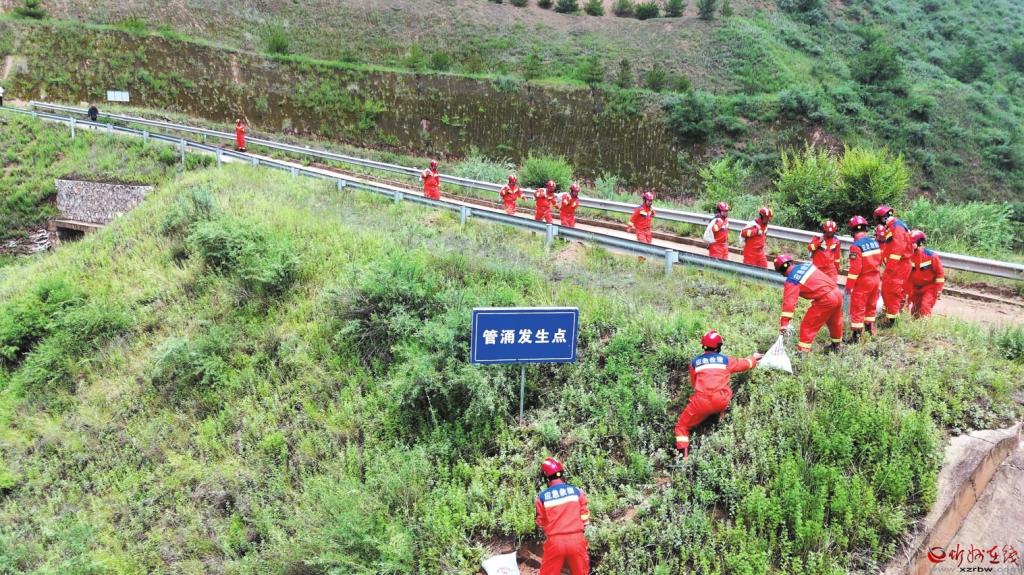 同時,河曲縣在土溝鄉(xiāng)土溝村開展水庫淤地壩暨山洪災(zāi)害防汛應(yīng)急演練,模擬強降雨引發(fā)山洪險情。演練中,監(jiān)測預(yù)警組通過大喇叭、敲鑼等方式發(fā)布預(yù)警,民兵、醫(yī)護人員利用農(nóng)用車、救護車轉(zhuǎn)移特殊群體,確?!安宦┮蝗恕?;應(yīng)急搶險組針對淤地壩險情進行“揭孔塞”泄洪操作,構(gòu)筑反濾圍井控制管涌,展現(xiàn)專業(yè)搶險能力;后勤保障組、醫(yī)療防疫組全程跟進,確保物資供應(yīng)和衛(wèi)生安全。河曲縣以演練為契機,完善“預(yù)警-響應(yīng)-處置”全鏈條機制,提升了基層防汛能力。