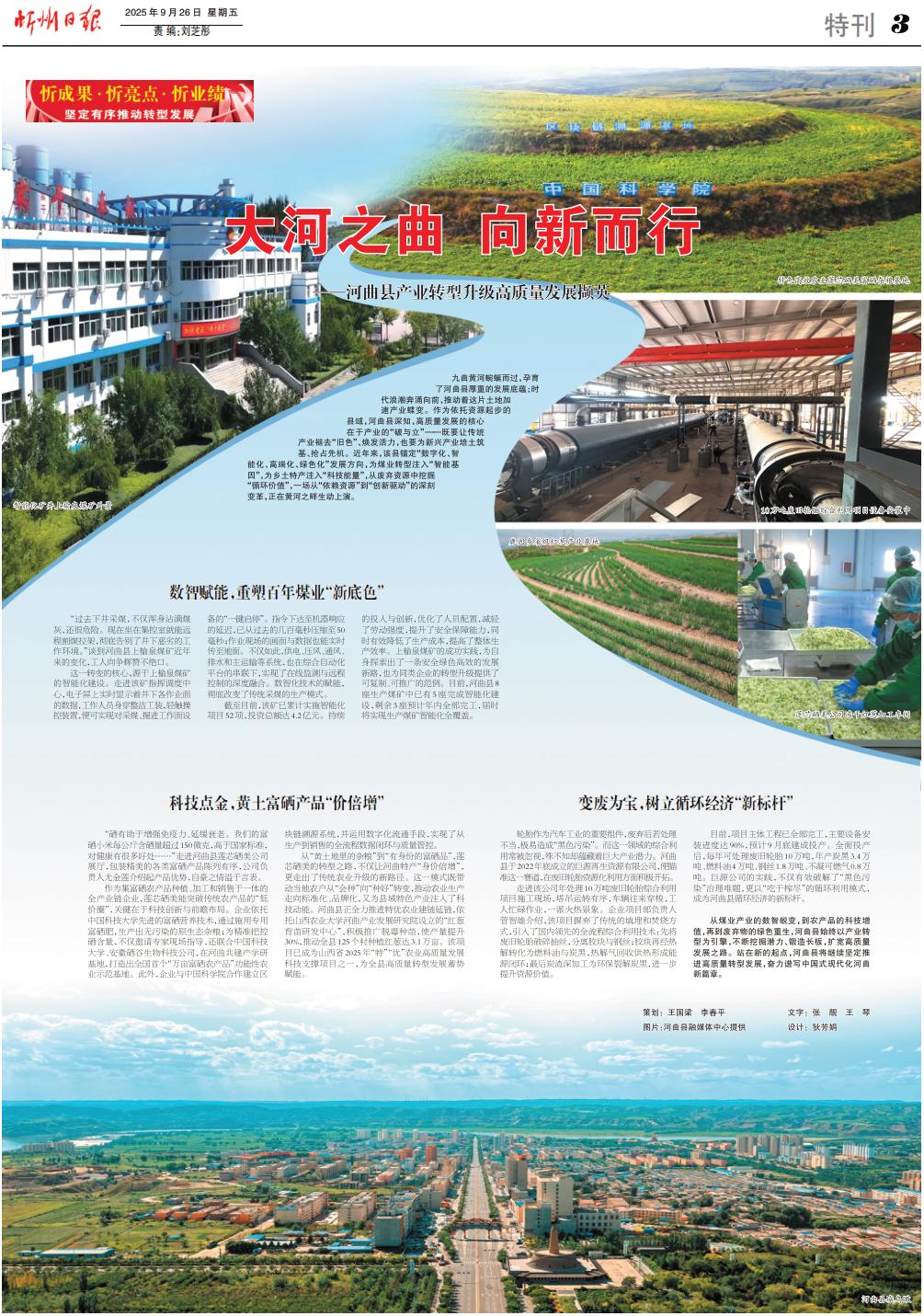 九曲黃河蜿蜒而過(guò),孕育了河曲縣厚重的發(fā)展底蘊(yùn);時(shí)代浪潮奔涌向前,推動(dòng)著這片土地加速產(chǎn)業(yè)蝶變。作為依托資源起步的縣域,河曲縣深知,高質(zhì)量發(fā)展的核心在于產(chǎn)業(yè)的“破與立”——既要讓傳統(tǒng)產(chǎn)業(yè)褪去“舊色”、煥發(fā)活力,也要為新興產(chǎn)業(yè)培土筑基、搶占先機(jī)。近年來(lái),該縣錨定“數(shù)字化、智能化、高端化、綠色化”發(fā)展方向,為煤業(yè)轉(zhuǎn)型注入“智能基因”,為鄉(xiāng)土特產(chǎn)注入“科技能量”,從廢棄資源中挖掘“循環(huán)價(jià)值”,一場(chǎng)從“依賴(lài)資源”到“創(chuàng)新驅(qū)動(dòng)”的深刻變革,正在黃河之畔生動(dòng)上演。