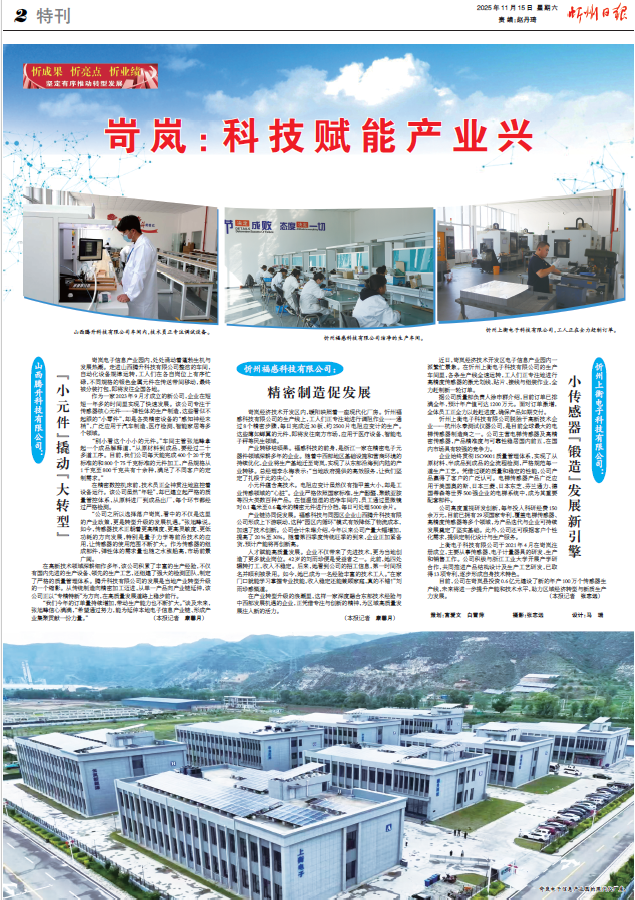目前,公司在岢嵐縣投資0.6億元建設(shè)了新的年產(chǎn)100萬個(gè)傳感器生產(chǎn)線,未來將進(jìn)一步提升產(chǎn)能和技術(shù)水平,助力區(qū)域經(jīng)濟(jì)轉(zhuǎn)型與新質(zhì)生產(chǎn)力發(fā)展。(康馨月 張志遠(yuǎn))