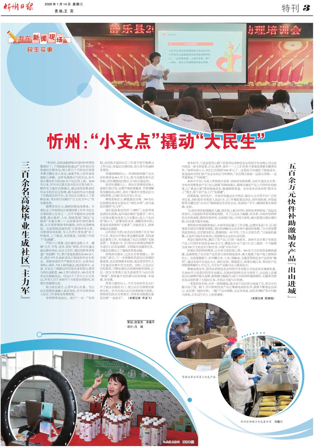 “李奶奶,您的高齡津貼申請材料我?guī)湍砗昧?,下周就能審批通過!”在忻府區(qū)的街道社區(qū)服務(wù)站,剛?cè)肼殠讉€月的社區(qū)助理李菁正蹲在老人身邊,指著手機上的申請進(jìn)度耐心講解。這樣充滿煙火氣的互動,如今每天都在忻州的200余個社區(qū)里上演。2025年以來,忻州市以落實省市民生實事為抓手,靶向發(fā)力基層治理痛點,通過高效招募高校畢業(yè)生擔(dān)任社區(qū)助理,既為高校畢業(yè)生搭建了實踐成長的平臺,也為社區(qū)治理注入了新鮮血液,用實際行動踐行“以人民為中心”的發(fā)展思想。