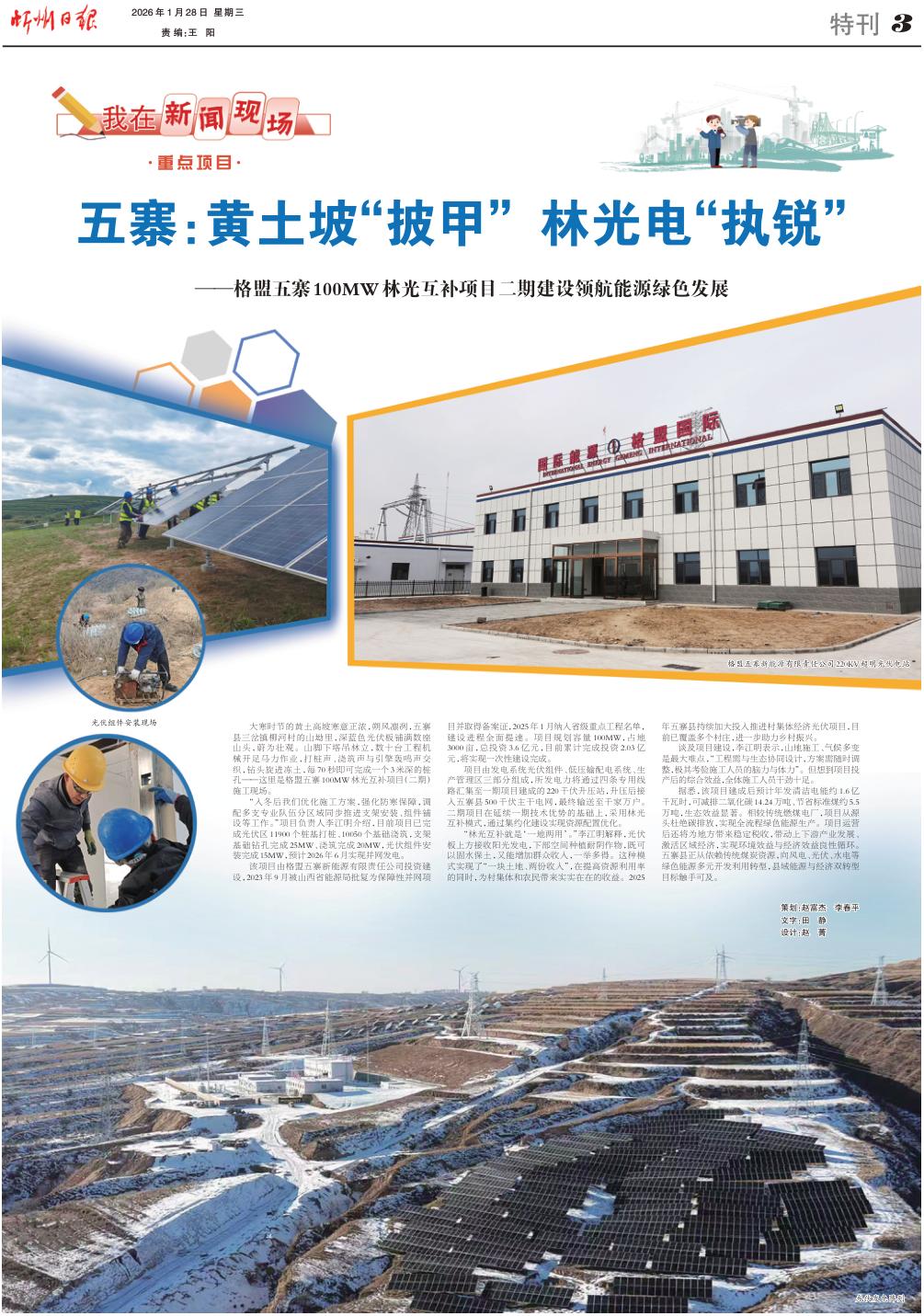 該項(xiàng)目由格盟五寨新能源有限責(zé)任公司投資建設(shè),2023年9月被山西省能源局批復(fù)為保障性并網(wǎng)項(xiàng)目并取得備案證,2025年1月納入省級重點(diǎn)工程名單,建設(shè)進(jìn)程全面提速。項(xiàng)目規(guī)劃容量100MW,占地3000畝,總投資3.6億元,目前累計(jì)完成投資2.03億元,將實(shí)現(xiàn)一次性建設(shè)完成。