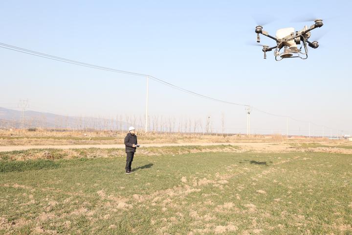 在位于江蘇連云港的云臺農(nóng)場,高效節(jié)能、操作便捷的植保無人機騰空而起,成為1.8萬畝小麥春季管護的得力助手。通過無人機作業(yè)每1000畝地僅需一名工作人員,兩天便可完成農(nóng)場全部小麥地的施肥。