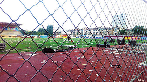 6月18日晚,市體育場在舉辦完一場音樂盛會后,現(xiàn)場一片狼藉,垃圾滿地。臟亂的場面給工作人員帶來很大工作量,希望市民還是要多愛護公共場所環(huán)境衛(wèi)生。(網(wǎng)友:藍天碧水 攝)