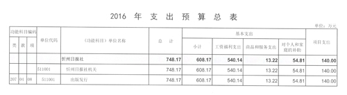 忻州日報社2016年度部門預算及“三公”經(jīng)費預算公開情況