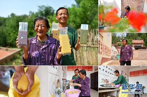 張成華,女,1949年出生,山西省長(zhǎng)治市武鄉(xiāng)縣嶺頭村人。近年來(lái),嶺頭村在縣里有關(guān)部門的扶持下,對(duì)村民開展電商培訓(xùn)。村民們嘗試著在手機(jī)上“開店”,把小米、核桃、綠豆等農(nóng)產(chǎn)品在網(wǎng)絡(luò)上售賣。張成華的兒子魏寶玉開了網(wǎng)店后,自家的農(nóng)產(chǎn)品在網(wǎng)上銷售良好,家庭收入明顯增加。 左上:張成華(前)和兒子魏寶玉展示自家種的農(nóng)產(chǎn)品;右上:張成華在家中院子里收拾;右中:張成華走在村里的路上;右下:張成華的兒子魏寶玉將準(zhǔn)備發(fā)貨的農(nóng)產(chǎn)品進(jìn)行稱重;下中:張成華(前)將小米裝袋;下左:張成華在查看小米質(zhì)量(拼版照片,6月12日攝)。 地處晉東南的山西省長(zhǎng)治市,位于由太行山、太岳山環(huán)繞而成的上黨盆地中。在群山中、崖壁上,許多村莊自然條件惡劣,基礎(chǔ)設(shè)施落后,脫貧致富是大山深處人們的迫切心愿。 近年來(lái),一場(chǎng)場(chǎng)脫貧攻堅(jiān)戰(zhàn),在一個(gè)個(gè)深山村打響。政府全力探索脫貧路徑的同時(shí),山區(qū)百姓因地制宜,靠自己的雙手和智慧走上致富路,交出了一份扎實(shí)的脫貧答卷。 記者在太行山、太岳山一路尋訪,記錄下多位70歲老人的生活。這些共和國(guó)的同齡人,親歷了山鄉(xiāng)的巨變,見證著長(zhǎng)治山區(qū)脫貧攻堅(jiān)偉大工程的一步步推進(jìn)。 新華社記者 詹彥 攝