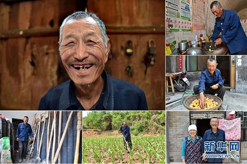 李增福,男,1949年出生,山西省長(zhǎng)治市潞城區(qū)上黃村人,自己和老伴都患有較嚴(yán)重的慢性病,家里6口人靠種植6畝玉米地為生,生活貧困。2016年女兒和女婿參加了村里組織的脫貧技能培訓(xùn)并開(kāi)了一家特色面食店,家里的日子逐漸好了起來(lái)。 左上:李增福肖像;右上:李增福在切菜;右中:李增福在晾曬剛摘的杏;右下:李增福和老伴合影;下中:李增福在田地里鋤草;下左:李增福在挑選農(nóng)具(拼版照片,6月11日攝)。 地處晉東南的山西省長(zhǎng)治市,位于由太行山、太岳山環(huán)繞而成的上黨盆地中。在群山中、崖壁上,許多村莊自然條件惡劣,基礎(chǔ)設(shè)施落后,脫貧致富是大山深處人們的迫切心愿。 近年來(lái),一場(chǎng)場(chǎng)脫貧攻堅(jiān)戰(zhàn),在一個(gè)個(gè)深山村打響。政府全力探索脫貧路徑的同時(shí),山區(qū)百姓因地制宜,靠自己的雙手和智慧走上致富路,交出了一份扎實(shí)的脫貧答卷。 記者在太行山、太岳山一路尋訪(fǎng),記錄下多位70歲老人的生活。這些共和國(guó)的同齡人,親歷了山鄉(xiāng)的巨變,見(jiàn)證著長(zhǎng)治山區(qū)脫貧攻堅(jiān)偉大工程的一步步推進(jìn)。 新華社記者 曹陽(yáng) 攝 |
