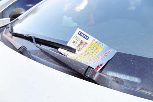 情況三:在日常生活里,我們經(jīng)常會看到一些散發(fā)銷售商品房廣告的人將廣告紙放到汽車的雨刮器下面,如果駕駛員不及時清理,會遮擋前方玻璃的視線;一旦廣告紙順勢滑入汽車前蓋下的驅(qū)動器械里面,還可能造成不可預(yù)測的安全隱患。