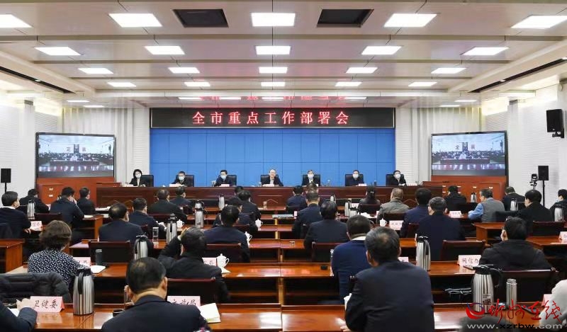 全市重點工作部署會。劉紀森攝 本報訊 (記者楊峰雷)2月8日,全市重點工作部署會召開,市委書記鄭連生主持會議并講話。他強調(diào),要深入貫徹落實省委十一屆十一次全會暨省委經(jīng)濟工作會議、市委四屆十次全會暨市委經(jīng)濟工作會議精神,認真貫徹落實省委、省政府和市委、市政府的新要求、新部署,始終保持進位爭先的精神狀態(tài)和積極追求,扎實推進各項工作,邁好第一步,見到新氣象,實現(xiàn)“開門紅”,做到“月月紅”,推動忻州高質(zhì)量高速度趕超型跨越式發(fā)展。市委副書記、市長朱曉東傳達全省相關(guān)會議精神,安排當前重點工作。市委副書記、宣傳部長郭奔勝,市人大常委會主任王珍,市委常委、市紀委書記劉卓良,市委常委、秘書長崔建新,副市長武憲堂、裴峰、賈玲香、郭寶厚出席會議。副市長王月娥安排疫情防控工作。