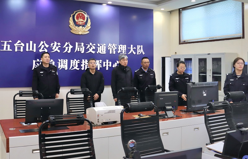 朱曉東在五臺(tái)山交警大隊(duì)檢查值班值守情況。李行