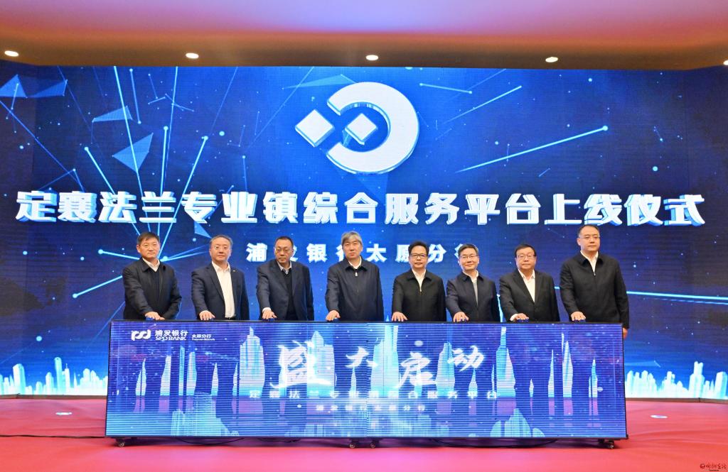 定襄·浦發(fā)銀行太原分行“法蘭專業(yè)鎮(zhèn)金融綜合服務平臺”上線儀式現(xiàn)場。馮曉磊 攝