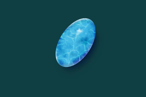 海紋石“石如其名”,有著和蔚藍(lán)大海一樣的顏色,其中藍(lán)綠色夾白色的形態(tài)就像海上的朵朵浪花。從礦物學(xué)的角度來說,它實(shí)際上是藍(lán)色針鈉鈣石的塊狀集合體。目前的研究認(rèn)為,海紋石的藍(lán)色部分和白色的紋路部分的礦物成分相同,均含有針鈉鈣石。其中藍(lán)色部分完全由針鈉鈣石組成,而白色部分由針鈉鈣石、方解石兩種礦物構(gòu)成,每種礦物顆粒均是微米級(jí)別。嚴(yán)格來說,海紋石屬于針鈉鈣石的含銅變種,它的藍(lán)色得益于銅、鉻、釩等過渡元素,其中銅為主要的致色元素。